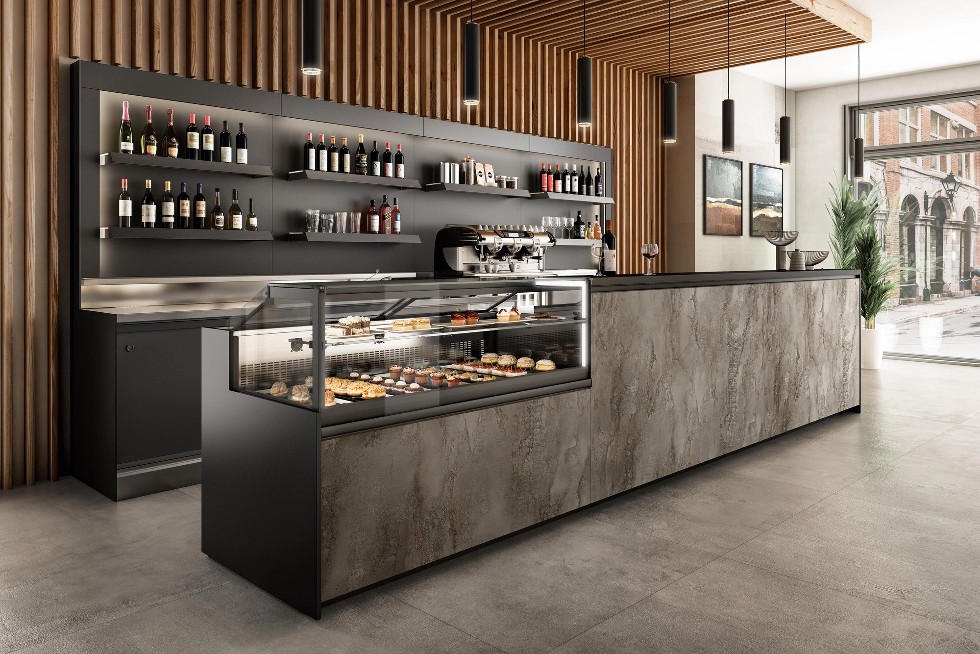 Il bar organizzato è un elemento importante per l’accoglienza dei clienti. La parete, ben arredata e arricchita da Expo Wall, contribuisce a creare un’atmosfera piacevole ed espone con eleganza la scelta delle bevande, alla perfetta temperatura di servizio.