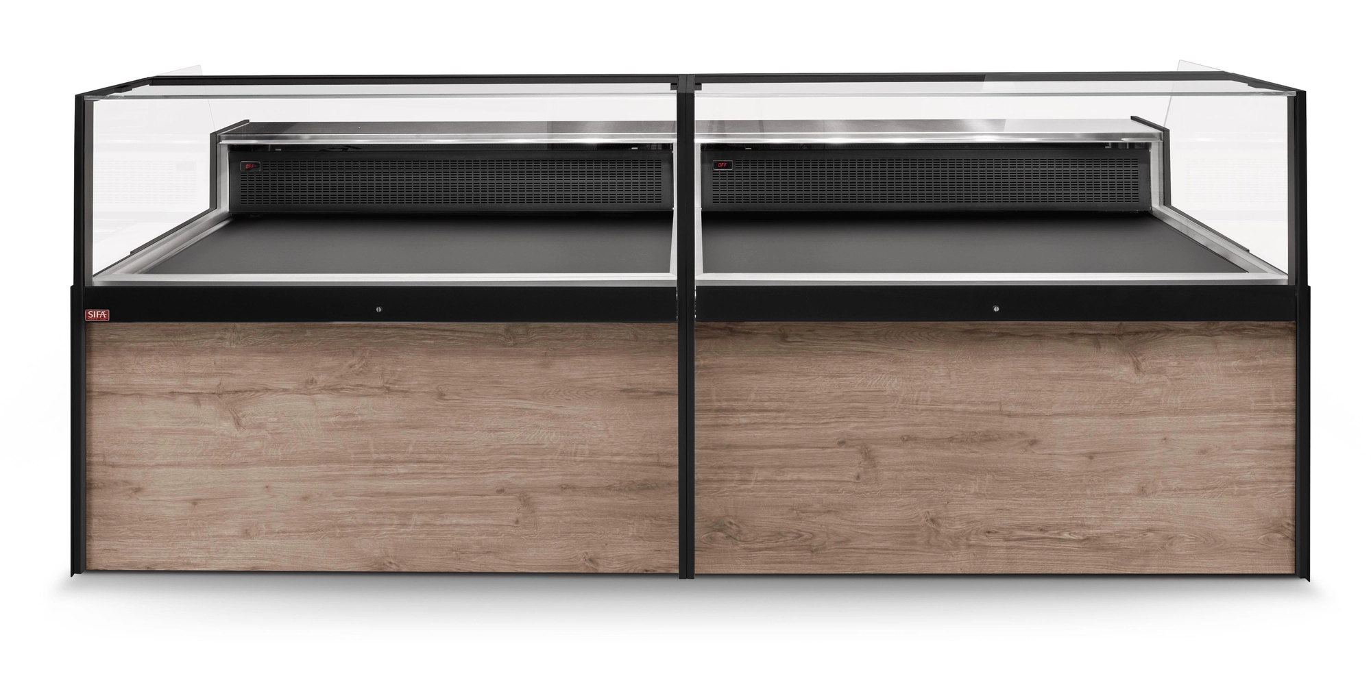 Glamour boasts a unique, structured design; elegant black frames the finest products. The shelves’ generous display options enhance the freshness and vibrant colors.