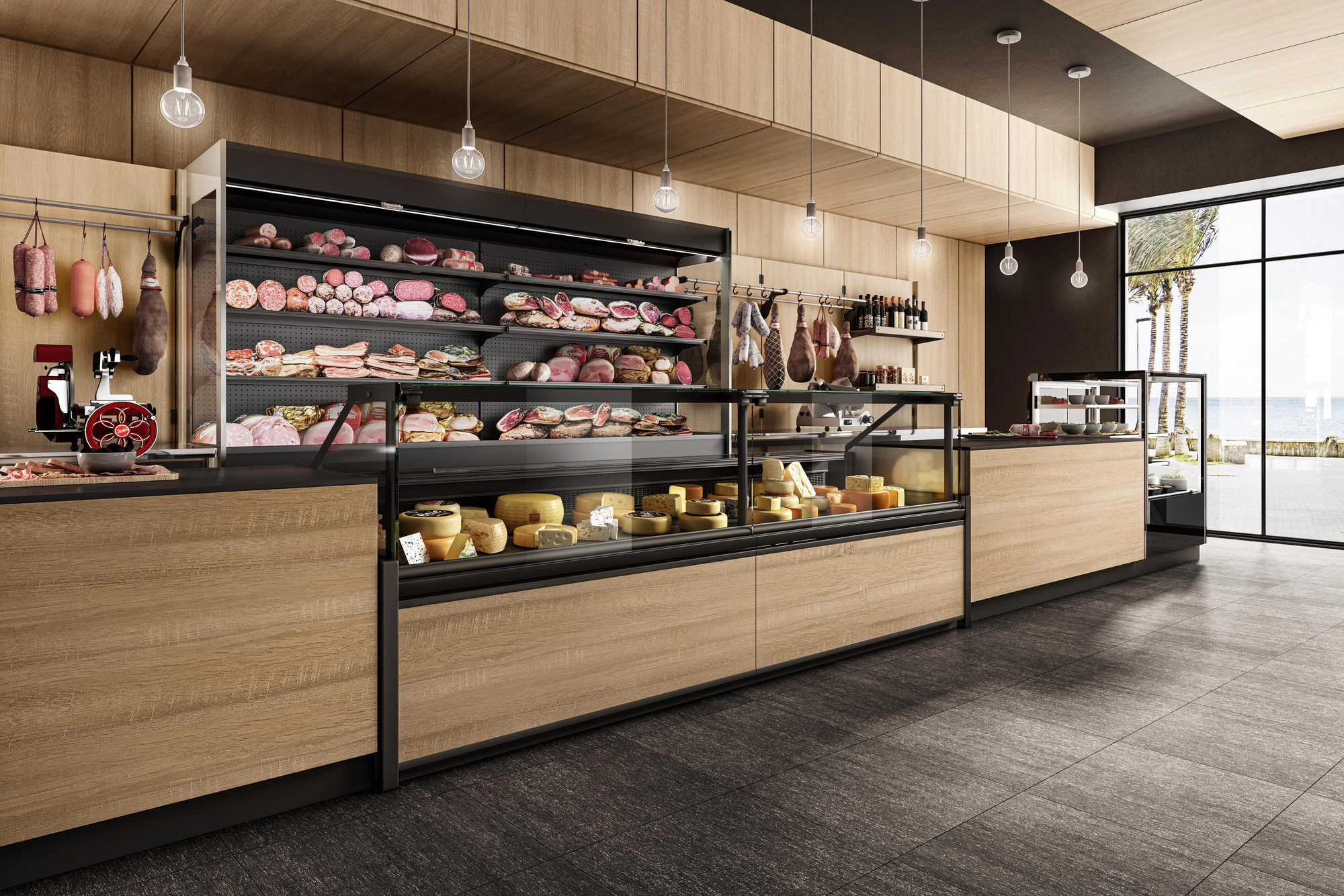 Il banco alimentare modello PROMOTER è particolarmente indicato per negozi di gastronomia, salumeria, pasta fresca. La scelta del sistema di refrigerazione è possibile tra la ventilata o la statica. E’ sempre prevista la cella di riserva sottobanco con sportelli.